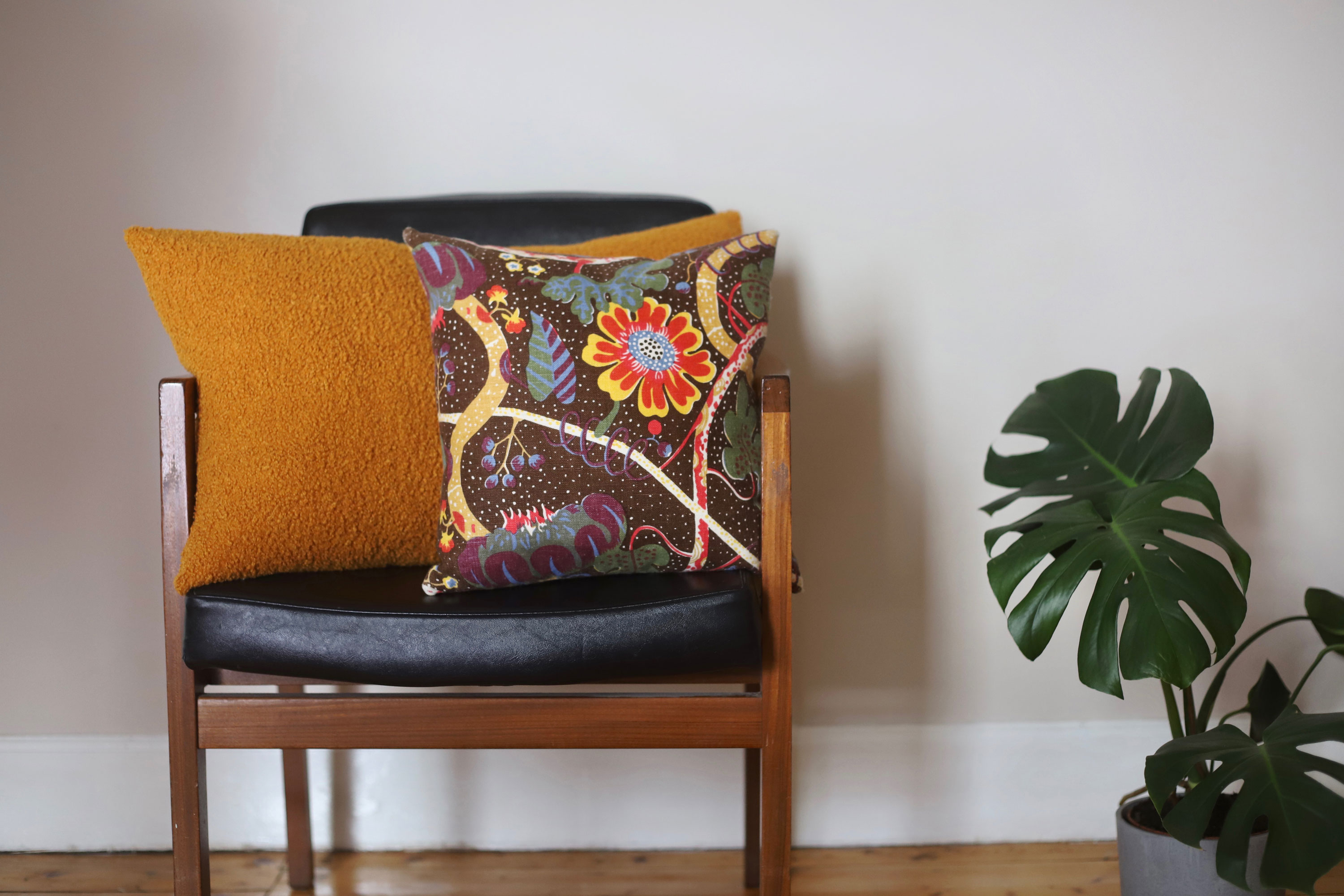 Elegant cushion with custom piped edge made from client fabric. Minimal design ensures the textile stands out.