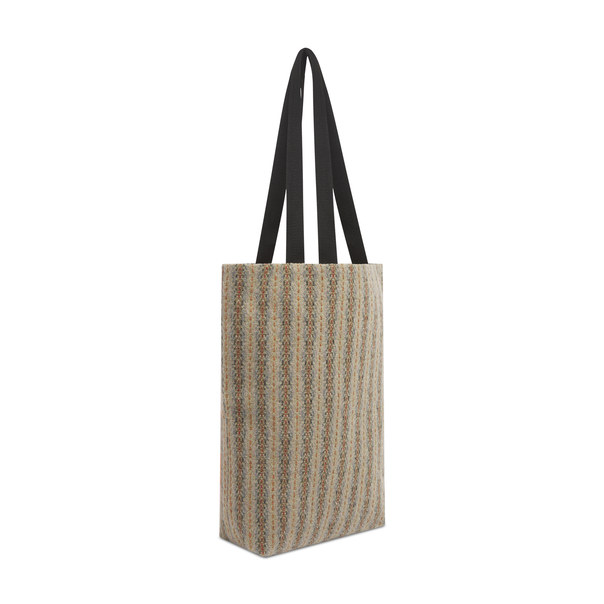 Structured tote bag made using client fabric. Simple, practical design emphasises durability.